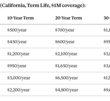 Cost per $100,000 coverage: $3,000 over 20 years