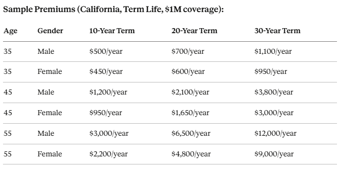 $1M coverage, 45-year-old, $1,500/year premium: